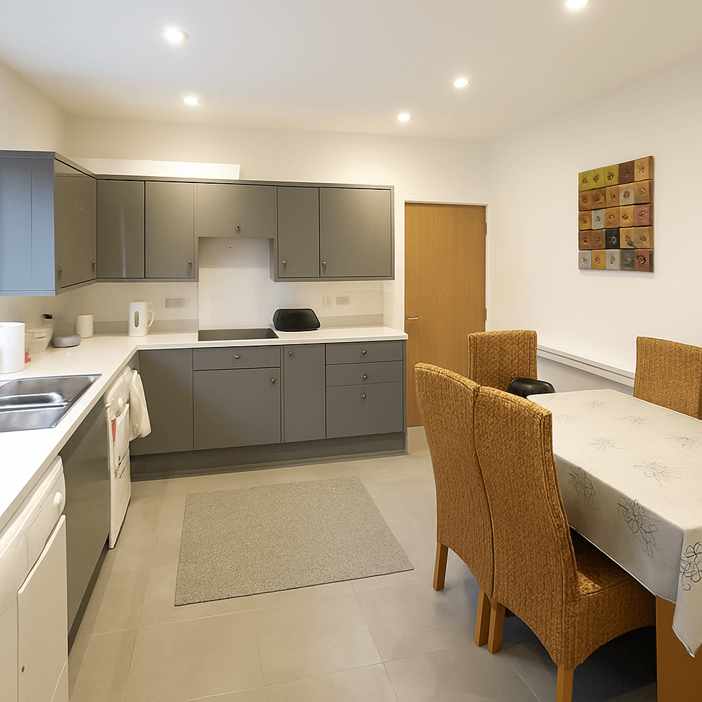 Although we encourage social integration at Acorns, we also understand that for some individuals the need to be able to be independent in their own living space is paramount. In Avenue we have created environments to support service users with challenging behaviour but also encouraging social integration. The communal areas are large and support independence and choice. The office is at the top of the home so it does not intrude in the day to day support of service users. The rear garden has been divided to share with the ground floor unit but remains a good space for all service users to use.